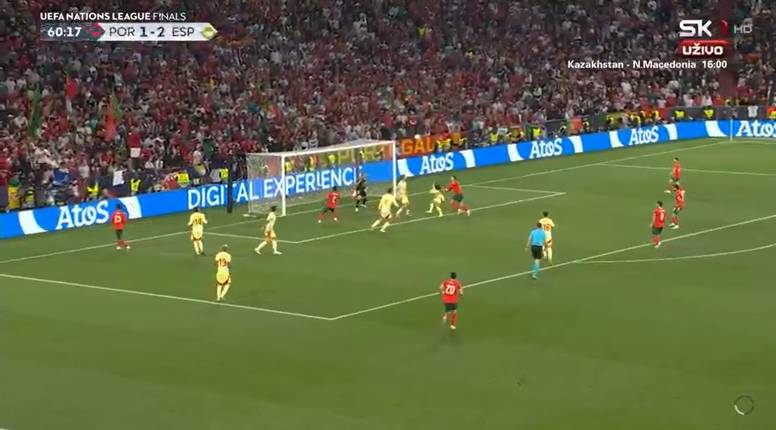 Novo izjednačenje vidjeli smo u 61. minuti kada je zabio Cristiano Ronaldo. Nuno Mendes je probio stranu i ubacio u sredinu prizemno, a lopta se od braniča Španjolske odbila visoko nakon čega se Ronaldo sjajno snašao i zabio za poravnanje.