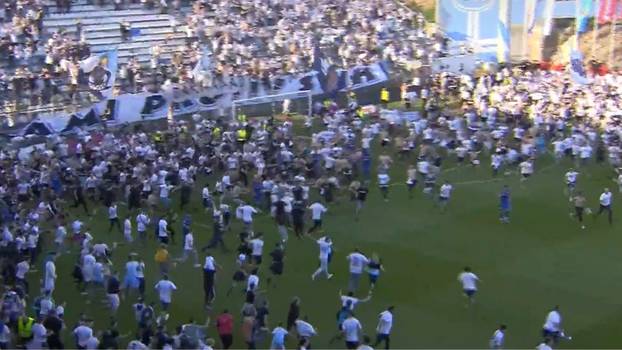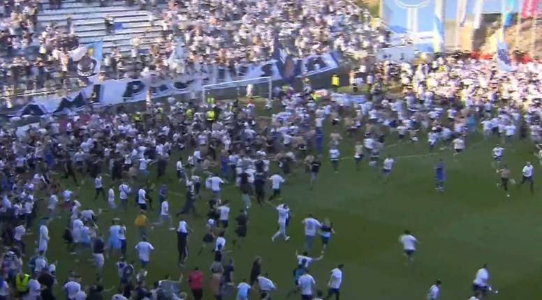 Nekoliko minuta prije kraja susreta, pripadnici Armade i ostali navijači Rijeke počeli su silaziti na teren, a zatim je uslijedilo veliko slavlje i navijačka invazija na Rujevicu