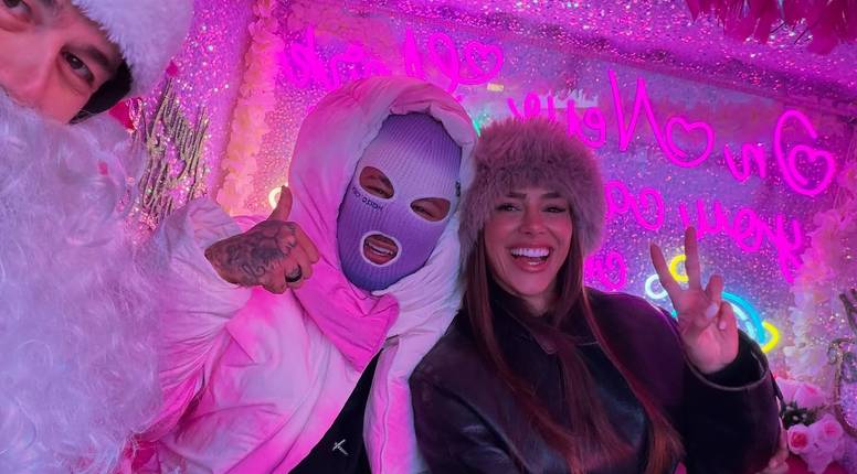 Dok se nasmijana Bruna, odjevena u toplu kožnu jaknu i šubaru, zabavljala i mahala kameri, njezin partner imao je drugačiju taktiku, pokušao je sakriti identitet. Brazilac je nosio upečatljivu ružičasto-bijelu jaknu i ljubičastu fantomku koja mu je u potpunosti skrivala lice.