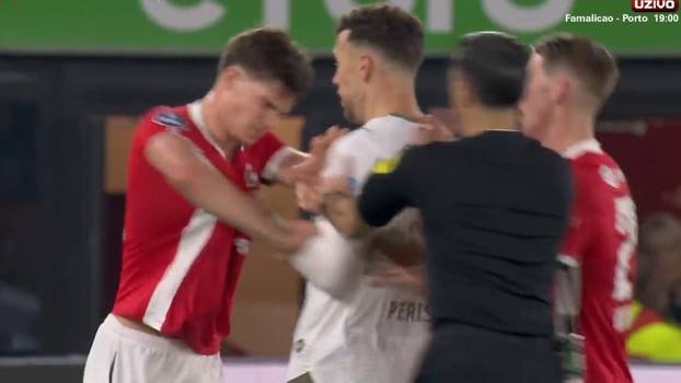 Točnije, ne samo njegovom, već o sukobu Perišića i stopera AZ-a Woutera Goesa u 60. minuti pri rezultatu 1-3. Sudac je prekinuo igru i dosudio slobodan udarac za domaćina, a Hrvat nije želio predati loptu suparniku. Uslijedila je reakcija Goesa koji mu je istrgnuo loptu iz ruku i udario Perišića, a Ivan ga je uhvatio za dres i nije ga puštao.