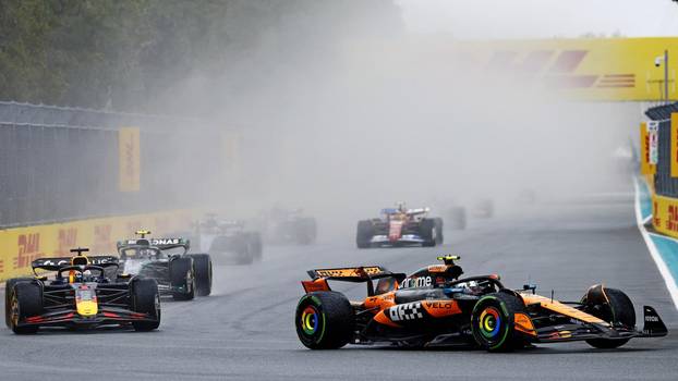 Lando Norris je pobijedio u kaotičnoj i kišom pogođenoj sprint-utrci na Velikoj nagradi Miamija, a dvostruko slavlje za McLaren osigurao je Oscar Piastri osvojivši drugo mjesto. Britanski vozač je tako smanjio zaostatak za momčadskim kolegom na devet bodova u ukupnom poretku Svjetskog prvenstva Formule 1.