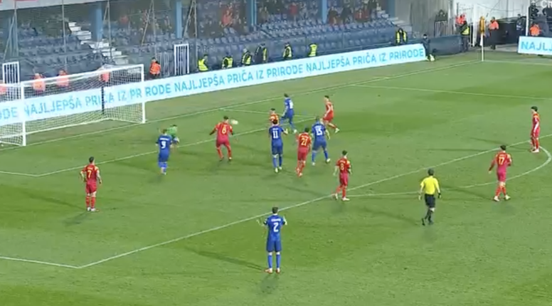 U 36. minuti stoper Crne Gore Rubežić silovitim klizećim startom odnio je loptu i srušio Jakića u kaznenom prostoru. Iako je start bio na loptu, sudac Meler nakon intervencije VAR-a pokazao je na bijelu točku
