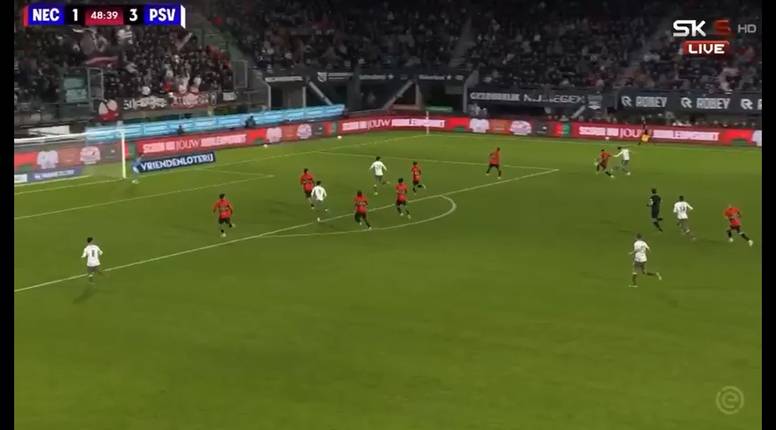 Perišićev ubačaj u 49. minuti Pepi je iskoristio za povećanje prednosti PSV-a na 4-1 u tom trenutku. Bio je to Pepijev drugi gol na utakmici, on je i započeo golijadu u 12. minuti. U prvom poluvremenu su još Van Bommel (30) i Veerman (34) zabijali za goste, a Misidjan (32) za domaće. Nakon drugog gola Pepija NEC se približio na 4-3 preko El Kachatija (53) i Cheryja(69), da bi Boadu (72) postavio konačni rezultat.