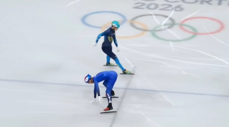🔥🇮🇹 | Waar hebben we dit eerder gezien? Een chaotische finale in deze heat op de 500 meter en de Italiaan Pietro Sighel komt achteruit over de finish. 😅 #MilanoCortina2026