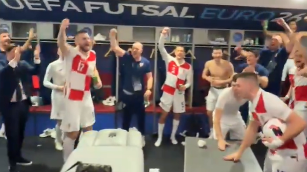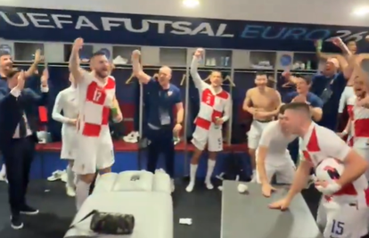 Nakon promašaja i sučevog zvižduka koji je označio kraj utakmice, krenulo je veliko slavlje hrvatskih futsalaša, a ono se nastavilo i u svlačionici.