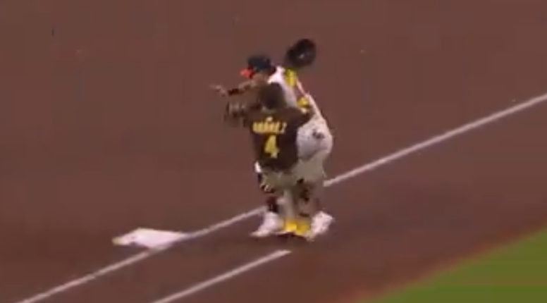 Mauricio Dubon, igrač Astrosa, uhvatio je lopticu na prvoj bazi pa se sudario s Luisom Arraezom kojeg je udario laktom u bradu. Zvijezda Padresa ostala je nepomično ležati na tlu, igrači su panično pokazivali kako mu treba pomoć, a liječnički timovi oba kluba utrčali su na travnjak i preuzeli stvar u svoje ruke. Utakmica je bila prekinuta na 11 minuta, nesretnom Arraezu morali su imobilizirati vrat, a nakon toga su ga prevezli u bolnicu u Houston na daljnje pretrage.