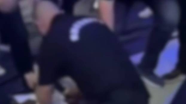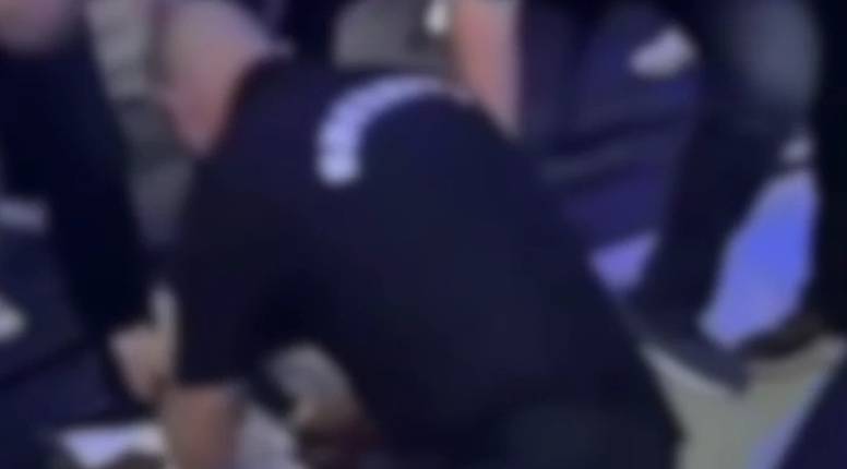 Zaštitari borca vuku za ruke i pokušavaju ga odvući iz dvorane, a onda ga jedan čovjek u odijelu nogom gazi po glavi. Nije vidljivo je li taj čovjek iz zaštitarske službe, ali je nasrtaj šokirao i ostale uključene u sukob koji su mu rukom pokazali da za to nema potrebe. Na snimci se vidi kako mu svom snagom staje na glavu tenisicom, što je izazvalo zgražanje kod ljudi.