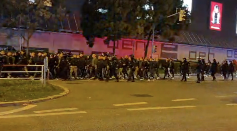 Navijači Hrvatske krenuli iz puba prema stadionu uz pjesme, dio njih uzvikivao je "Za dom spremni", a nešto kasnije ultrasi i su vikali "Srbe ćemo klati". Policija prati situaciju