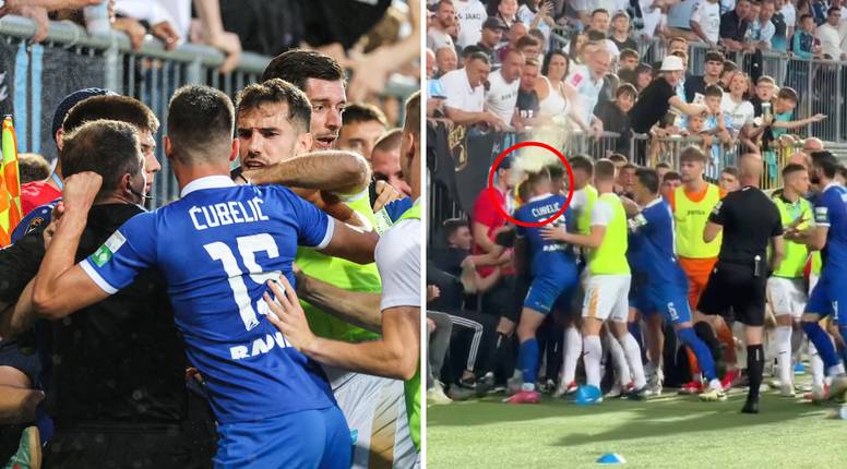 Nogometaši Rijeke i Slavena sukobili su se u 85. minuti nakon jednog duela pred zapadnom tribinom, Ivanu Ćubeliću jedna je budala raskrvarila glavu, a predmete su bacali i po završetku