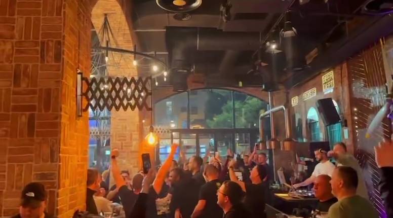 PODGORICA - Nedaleko od stadiona Pod Goricom više stotina hrvatskih navijača zagrijavalo je glasnice u jednom pubu, a domaćini su se pobrinuli da im bude što ugodnije pa im DJ pušta navijačke i domoljubne pjesme. Navijački klub Mi Hrvati objavio je kako je to izgledalo kad se čuo svevremenski hit "Lupi petama, reci 'evo sve za Hrvatsku'" Prljavog kazališta.