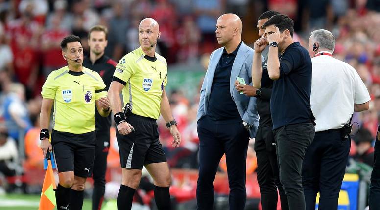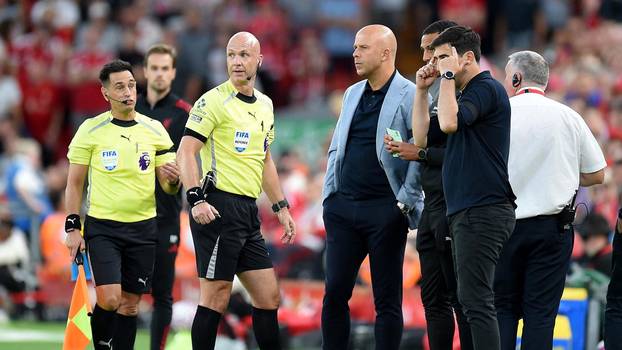 Sudac Anthony Taylor prekinuo je igru u 29. minuti, kod kornera Liverpoola, kako bi se pozabavio incidentom, pozvavši oba trenera na aut-liniju na kratak razgovor.