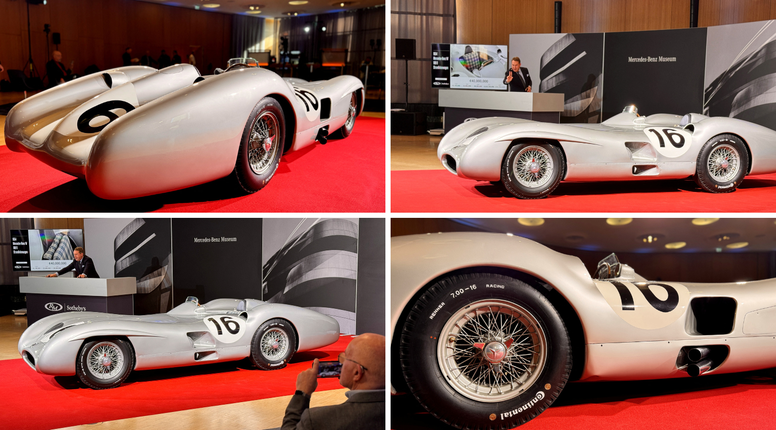 'Mečku' su 1955. godine vozili legendarni vozači Formule 1, Stirling Moss i Juan Manuel Fangio. Iste sekunde kada je najavljen na aukciji izazvao je veliku pažnju, ali rijetki su mislili da će probiti granicu od 50 milijuna eura. Identitet novog vlasnika ovog ljepotana nije poznat.
